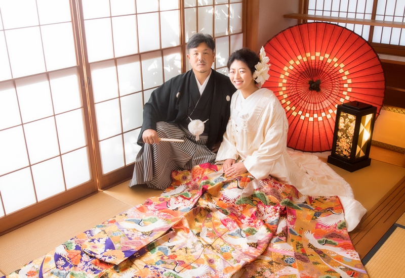 お姉ちゃんの紹介でご来店頂いたお二人。「別館和室でまるで昔の花嫁のような雰囲気の写真が撮れますよ」とお話しすると、ご自宅にお母様が大切に保管してある”花嫁のれん”や”番傘”があるということが判明。ぜひご自分のものを持込んで、自宅からお嫁に行くような雰囲気の写真を残したらご両親も喜ぶのでは…とご提案。
