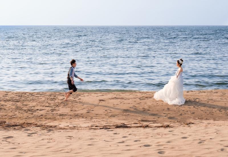 夏の暑い季節、海でのロケーション撮影をしたいと相談に来た若くてラブラブなお二人。