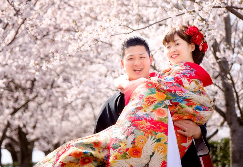 期間限定の桜のシーズンのブライダルフォトは、世界に誇れる素敵な写真になりますね。