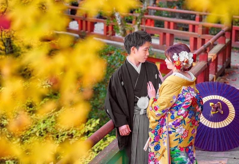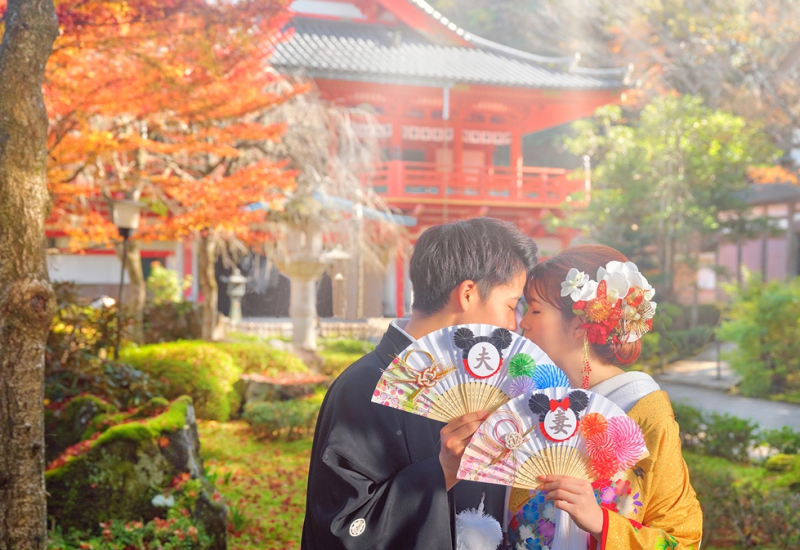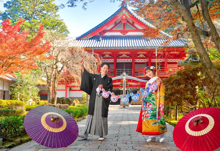 和装ロケには、季節的にも暑過ぎず寒過ぎずベストですし、最高のロケーションのため希望者が多いです。また、秋は何かと行事が多く一年で一番忙しいシーズンのため、紅葉ロケをご希望の方は、どうぞお早めにご相談下さい。