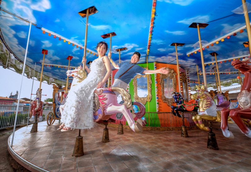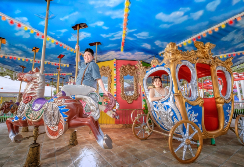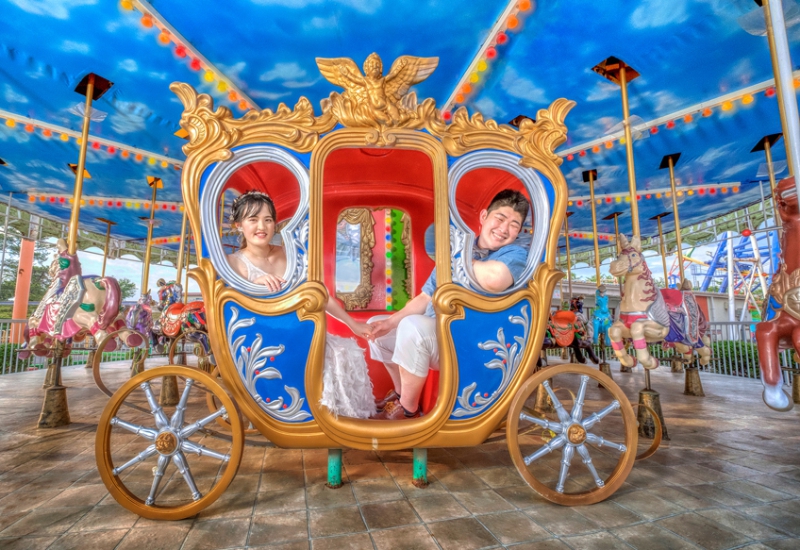 みんなが憧れる『テーマパークでフォトウエディングができたら最高だろうけど、そんなお金もないし、無理だよね・・・』と話しているのを聞き、何とか夢に近づけてあげたいという思いから、遊園地デートをご提案。