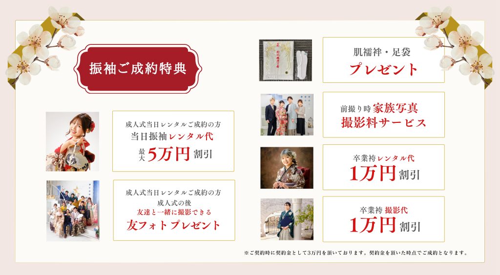 ・成人式当日の振袖フルレンタル 150,000円(税別)〜