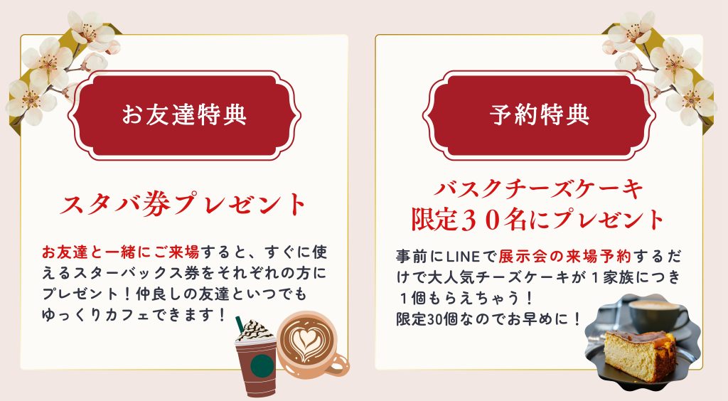 今回の展示会のみの豪華特典も多数ご用意しました。お気軽にご来場下さい!