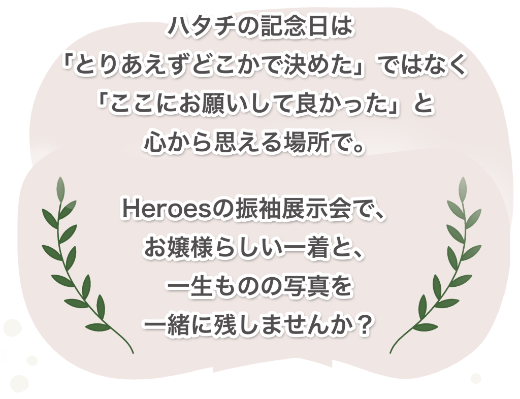 せっかくのハタチの記念日、写真だけでも残したいという方にもおすすめです。
